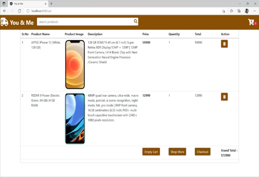 I developed "You and Me," an innovative online electronic store inspired by platforms like Flipkart and Amazon, showcasing my expertise in full-stack web development using Angular. The e-commerce platform features a dynamic product catalog with advanced search filtering capabilities and comprehensive user account management. By implementing NgRx for state management and optimizing performance through lazy loading techniques, I created a seamless and responsive user experience with efficient API integrations.