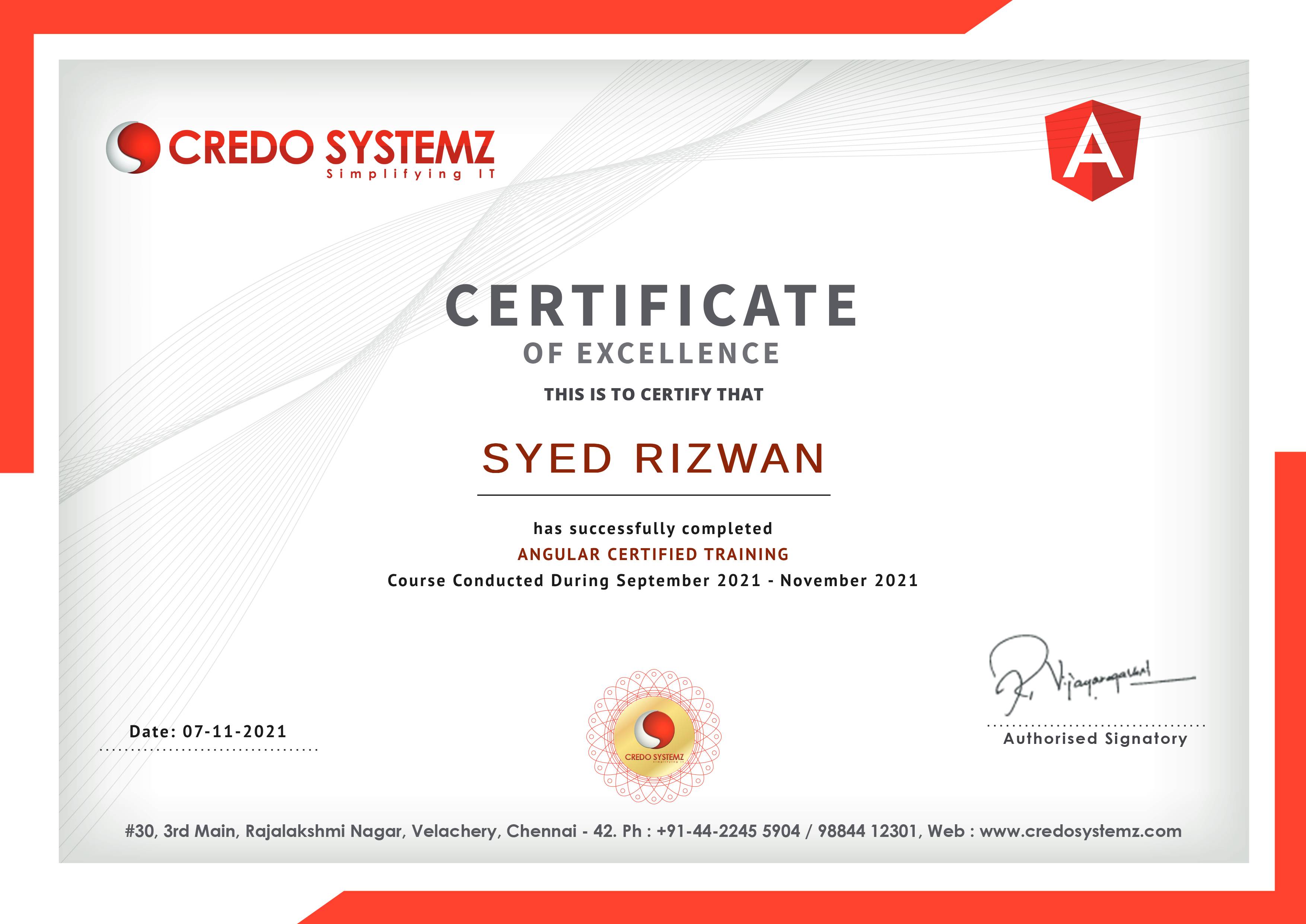 Here this is my certification from Credo Systems